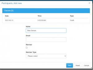 Once Logged in, you will see the below screen with a listing of classes.